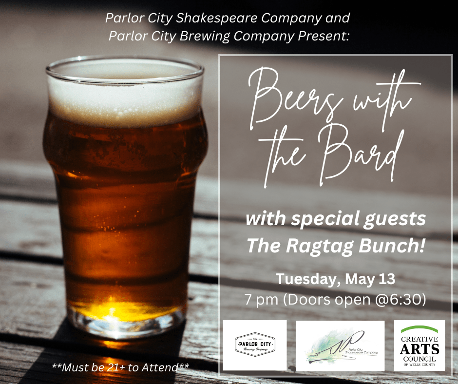 Can’t make it to Parlor City Brewing Company for Beer with the Bard in Bluffton? It’s you’re lucky day! We’ve added a performance at Wunderkrammer Company in Fort Wayne on May 16! AND we’ll be joined once again by our friends from The Rag Tag Bunch!